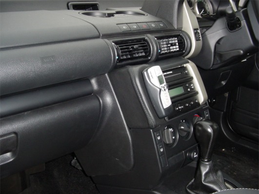 Pull forward centre console enough to place Communication Console over the side