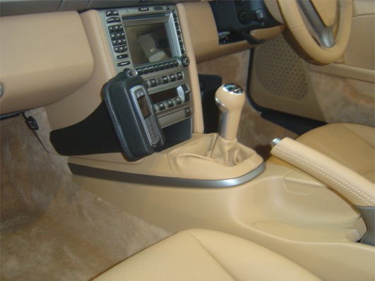adjacent to gear lever. Press into slot with the tag and bend up bottom tag.